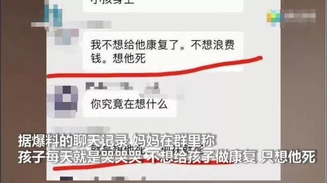 连扇6个耳光的人,正是孩子的父亲,随后,孩子母亲的群聊记录被曝光:不想给他做康复,只想他现在就去死。