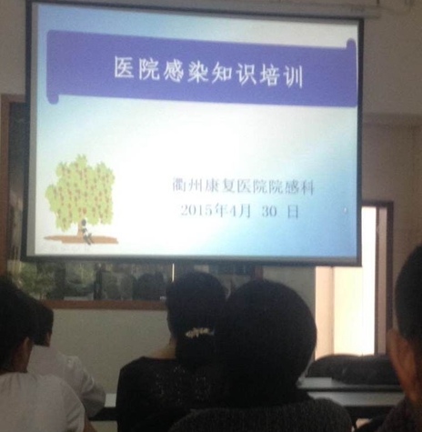 为加强医院员工对院感知识的了解,使其掌握卫生、职业防护等基本技能,树立正确的院感观念。2015年4月30日,我院周建英院长针对全院员工进行医院感染知识培训。