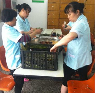 又是一年端午时节,粽子美味,艾蒿飘香。为了发扬民族精神,传承中华传统,使患者朋友在住院期间感受节日的快乐,体味美好生活,我院决定邀请患者亲属、员工一起包粽子。2015年6月18日中午十二点,以“共度端午节 医患一家亲”为主题的包粽子比赛活动在我院一楼食堂举行。比赛选手来自我院病友、家属、员工,共16名选手参加。