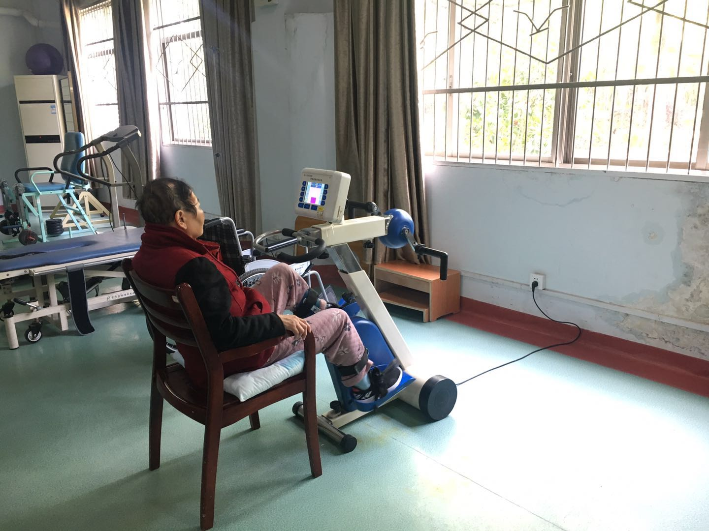 在这里,康复科夏主任会根据每个中风病人的情况制定相应的康复治疗方案,每个中风病人每天都要在康复训练师的指导下做各种形式的康复训练。