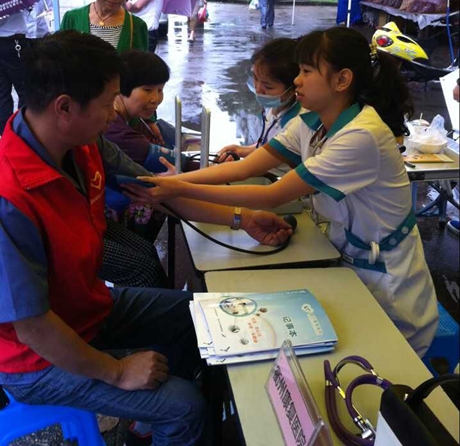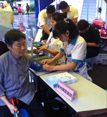 我院参加的”衢报传媒96811进社区“大型志愿服务活动第二站于书院社区进行。6月9日上午康复科主任胡建勇及护理部成员一行三人来到书院社区,为居民进行义诊。